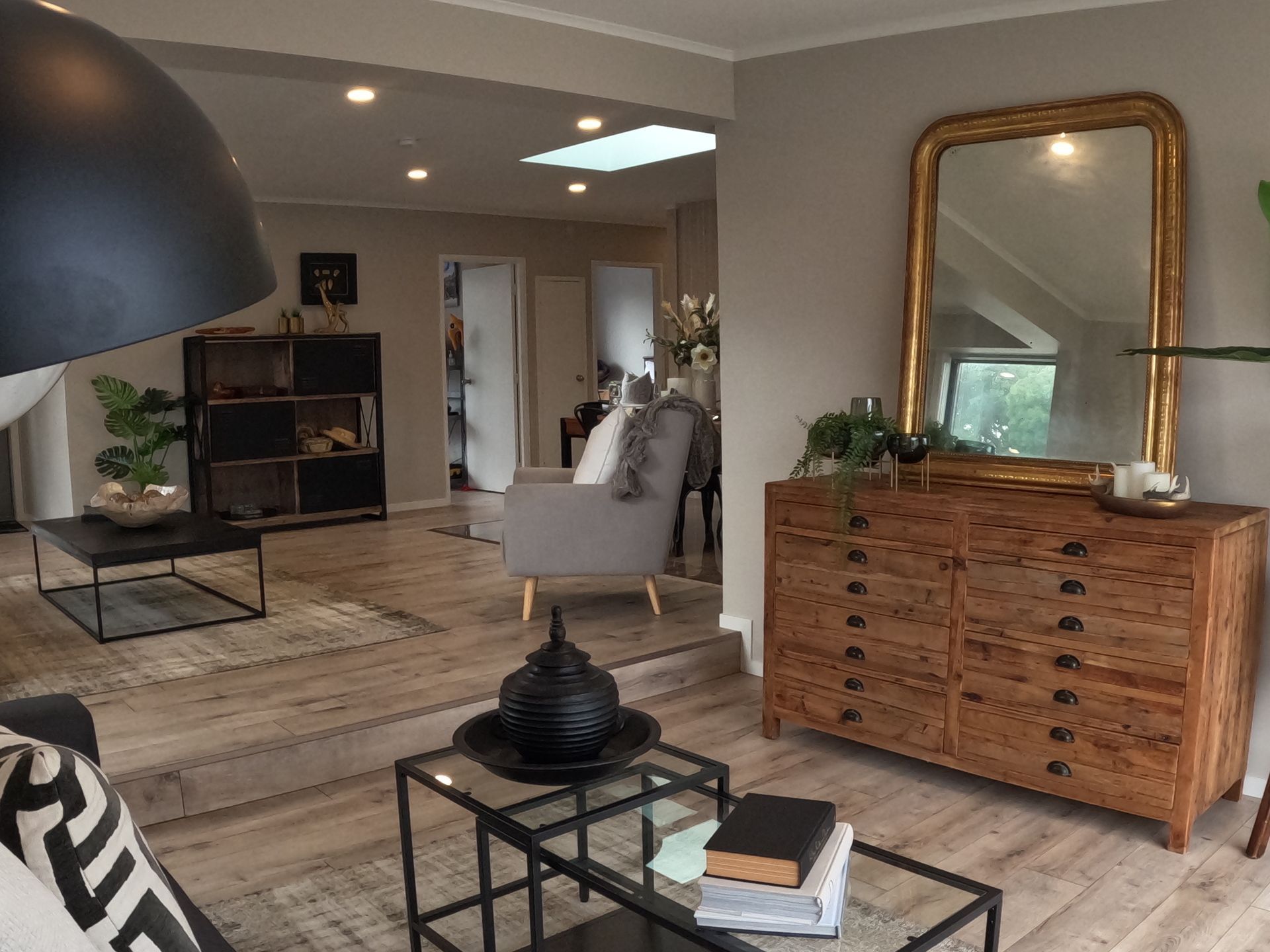 This renovation and home extension captures the visual of cool summer breezes and the drizzles of the winter seasons raindrops with its newly built in skylight above the dining space. This addition includes an open living room & kitchen floorplan which connect directly to all bedrooms & bathroom. The downlights in this open space welcomes relaxation and even screams the perfect space for a date night in!